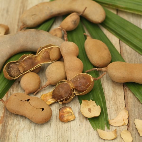 Tamarind is from a curved brown bean-pod from the tamarind tree. The pod contains a sticky pulp enclosing one to ten shiny black seeds. It is the pulp that is used as a flavouring for its sweet, sour, fruity aroma and taste.